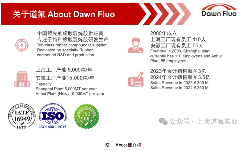 道氟公司的核心业务是专业定制特种橡胶混炼胶,凭借其优良的产品质量和多元的产品线公司已成为国内特种橡胶混炼胶行业的领导者。特种混炼胶生产线可以生产黑色及彩色的混炼胶,产品有FFKM、FKM、ACM、AEM、HNBR、NBR、ECO、FVMQ、VMQ、AFLAS等。